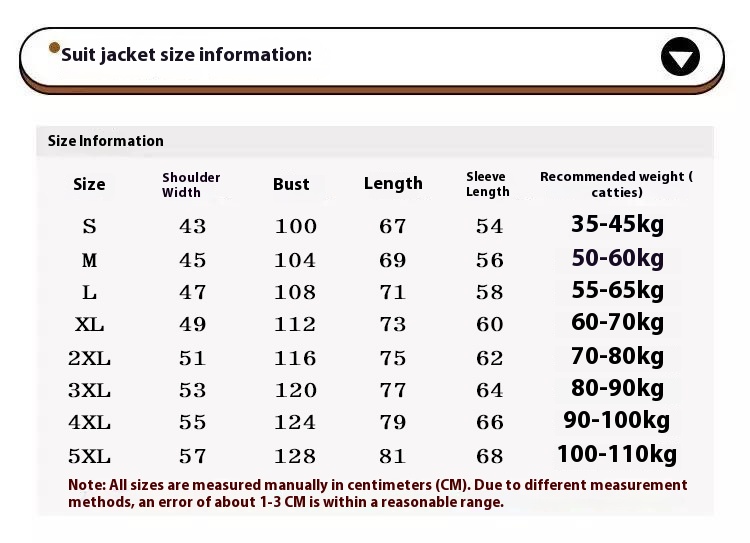 Size: S code [recommended 35.00kg-45.00kg],M code [recommended 50.00kg-6200kg],L code [recommended 55.00kg-65.00kg],XL code [200kg-70.00kg recommended],2XL code [70.00kg-80.00kg recommended]],3XL code [80.00kg-90.00kg recommended],4XL code [recommended 90.00kg-100.00kg],5XL code [recommended 100.00kg-110.00kg]]
